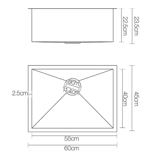 Cefito Kitchen Sink 60X45CM Stainless Steel Basin Single Bowl Silver