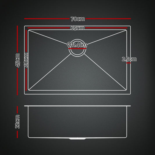 Cefito Kitchen Sink 30X36CM Stainless Steel Nano Basin Single Bowl Black