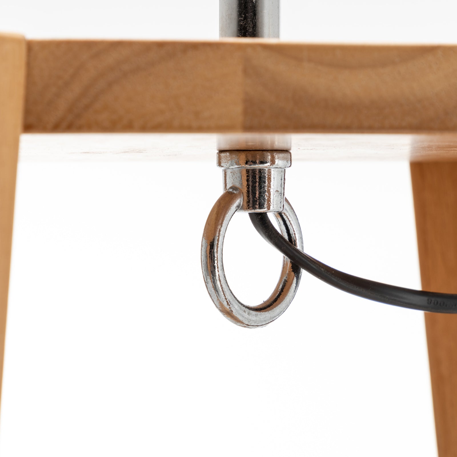 • Three square wood shelves integrated into the tripod base