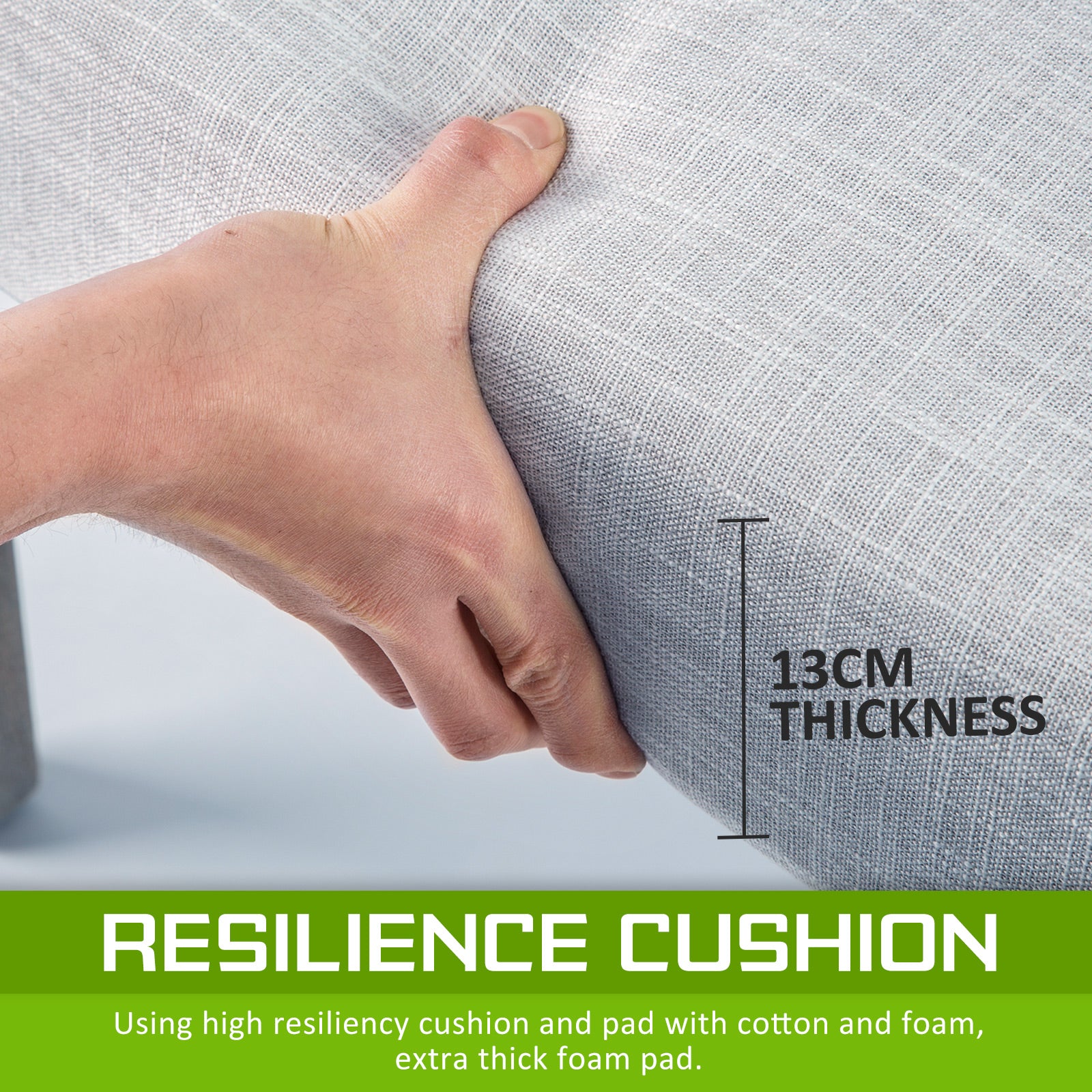 • 13cm thick seat cushioning with high resilience foam