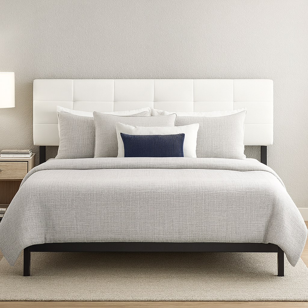 This headboard for standard King-sized bed frames is created with quality materials, including easy-to-maintain PU leather that will maintain its sophisticated look for many years to come. This particular model comes with a stately, timeless tufted button pattern that never goes out of style. A neutral white will blend seamlessly with a wide variety of bed frames and other bedroom furniture.